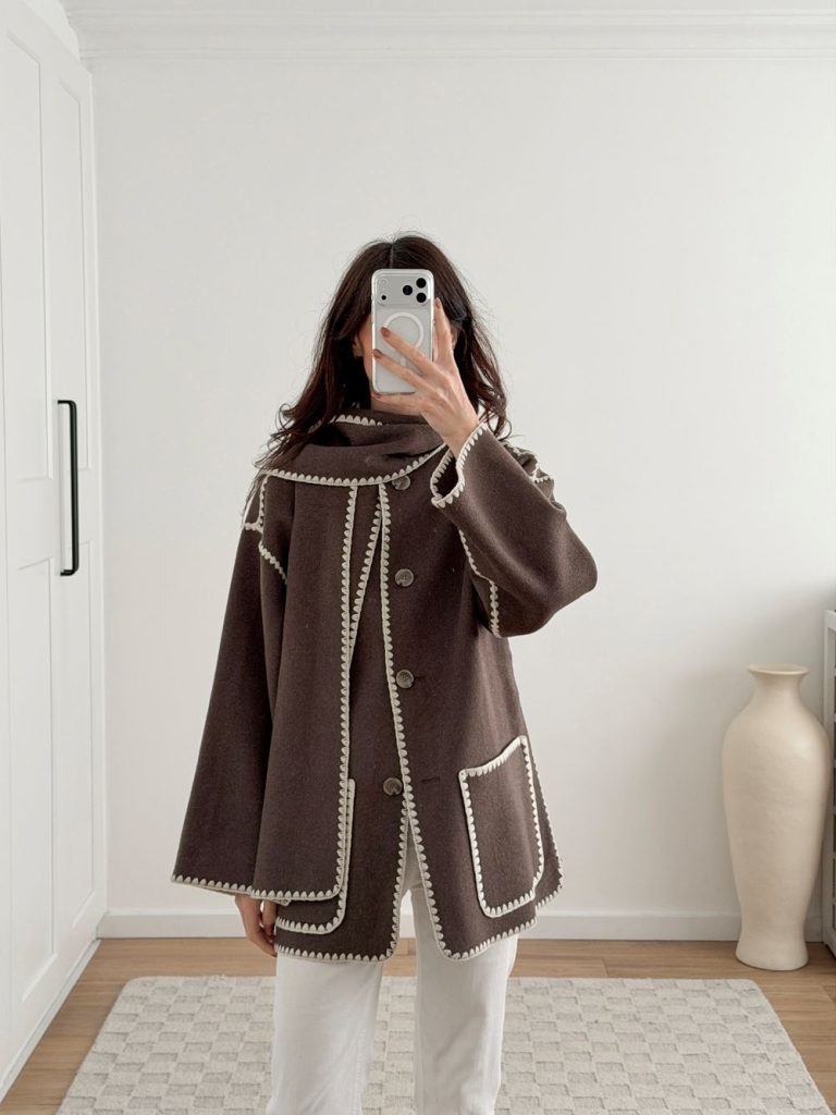 If you’re a long-time admirer of Toteme, then there’s no doubt that you’ll have seen some variation of this scarf coat before. For me, it’s the exceptional value that this delivers that makes it a top ten autumn staple from the brand. The double faced merino wool feels smooth to the touch, while also acting as a solid insulating layer against the elements. I love the whipstitch trim as it adds this traditional heritage touch and acts as a real point of contrast. Me being me, I’m always thinking about ways I’d improve something, and my only feedback here is I wish that the scarf were detachable… and a touch longer too for that drama. It looks nice worn both open (with the scarf draped to each side), or with it swept across one shoulder. Fits true to size for a relaxed fit. If you’re petite you may like to consider sizing down one.