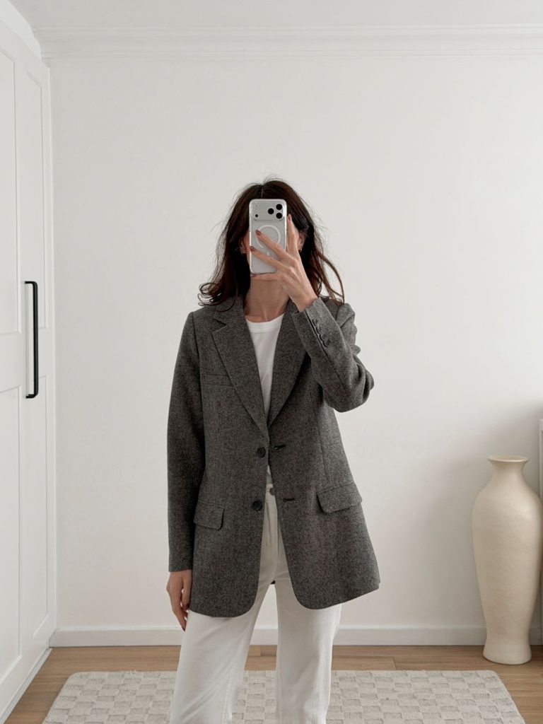 The OGs will know that one of my all time favourite wardrobe additions is an oversized wool blazer from Everlane. This one, to be exact. I was thrilled when I spied Quince offering up their own remarkably similar take, albeit at a lower price point. The key difference between the two is the fabric composition, which is a wool and poly blend on the Quince while it’s 100% wool on the Everlane version, though to touch the Quince version you wouldn’t know there’s any synthetic in there. It has that very traditional wool tactile quality to it on the hand. Comfortable to wear which is aided by the interior lining. There’s a small amount of the woollen fabric exposed to the skin but your base layer should avoid any potential irritation for those with sensitivities. Fits true to size for a relaxed fit. I wouldn’t recommend sizing down.