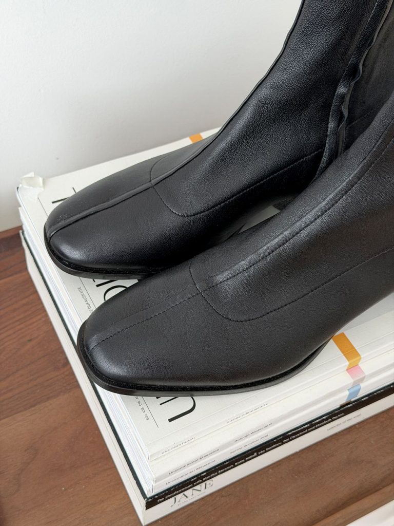 Final favourite that I had to include in this round up is a pair of stretch leather heeled boots. Quince footwear is another one of those underrated categories, and as someone with wide feet I’ve been pleasantly surprised by how well they accomodate my foot. Plus, no break in required! These tick all those boxes while also being really comfortable, even standing for longer periods. The leather is beautiful and soft, and the zipper pull is very smooth. You will get a bit of scrunching of the leather, but this isn’t a deal breaker I don’t think. Love that the toe isn’t quite round or almond – it sits somewhere in between. Quince sizing is true to size and I always opt for a US10 which is their equivalent of an EU40.
